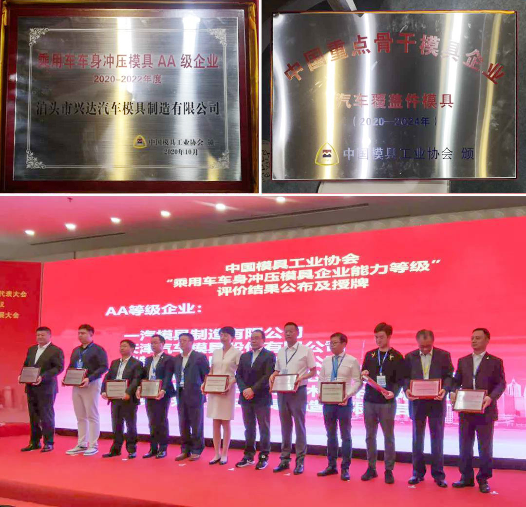 2020年10月9日,在中國模協(xié)第九屆會員代表大會暨2020中國模具行業(yè)發(fā)展大會上,興達模具制造有限公司獲中國模具工業(yè)協(xié)會2020-2022年度“乘用車車身沖壓模具A企業(yè)”評定并授牌